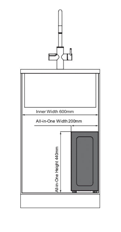 De All-in-One Water System wordt volledig geïntegreerd in een keukenkast en biedt direct toegang tot vier soorten water via een multifunctionele kraan. Eenvoudig, elegant en tijdbesparend.